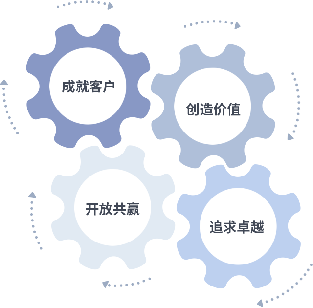 成就客户是一切决策的出发点,,,,创造价值是衡量所有工作的标准,,,追求卓越是ag亚洲集团做事做人的态度,,,,开放共赢是ag亚洲集团的格局也是最终的结果。。。。价值观的齿轮环环相扣,,推动着组织里的每个人不断向前。。